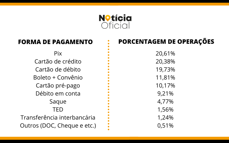 Conforme mencionamos, as operações com Pix superaram pela primeira vez as transações via cartão de crédito e cartão de débito, que até então eram as principais formas de pagamento utilizadas pelas famílias brasileiras.